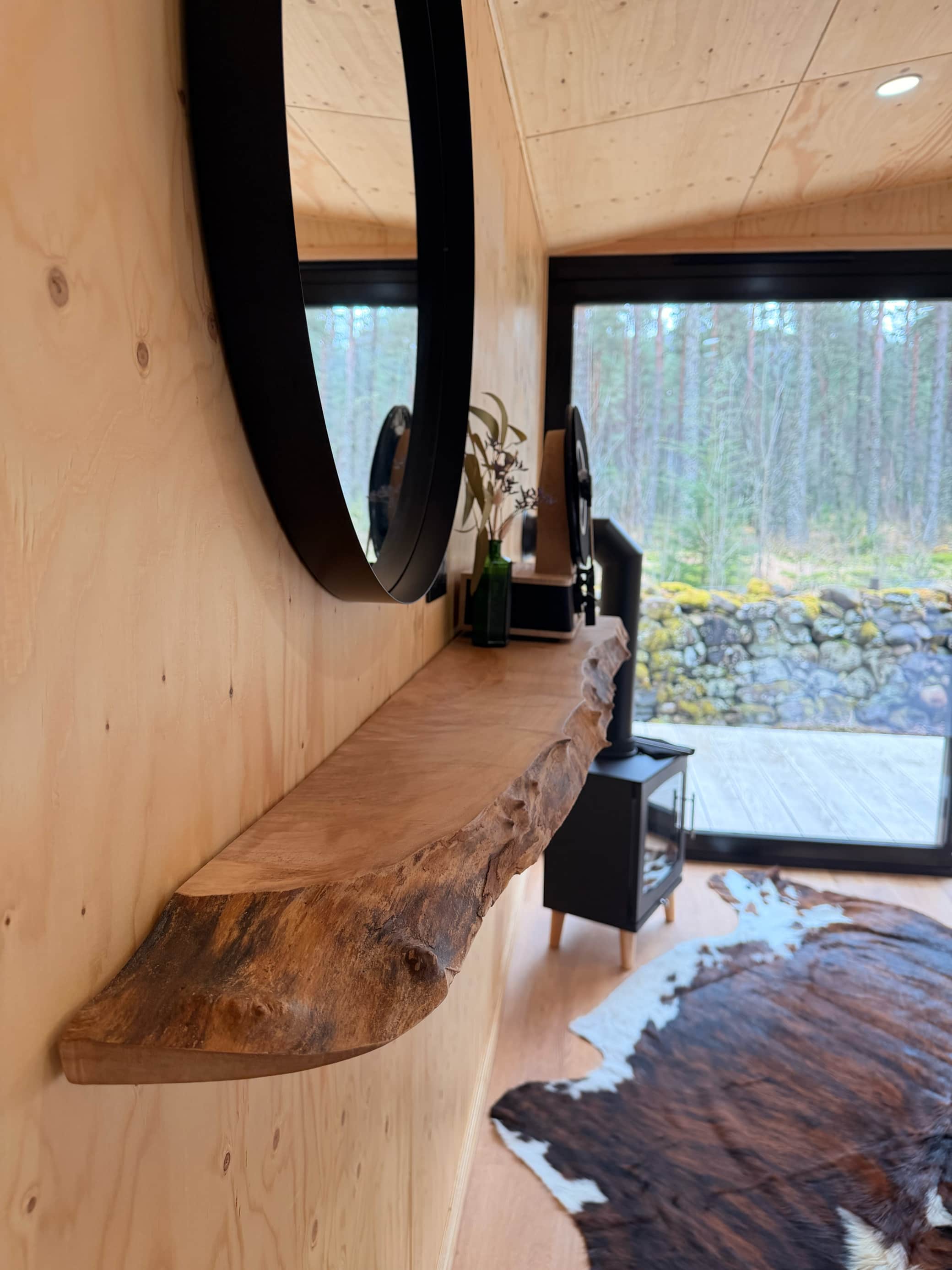 Kin blends thoughtful design with natural beauty, offering everything you need for a comfortable and restorative stay. The cabin features a cosy king size bedroom, a stylish bathroom with rain shower, and a warm, inviting interior that makes it easy to settle in and unwind.